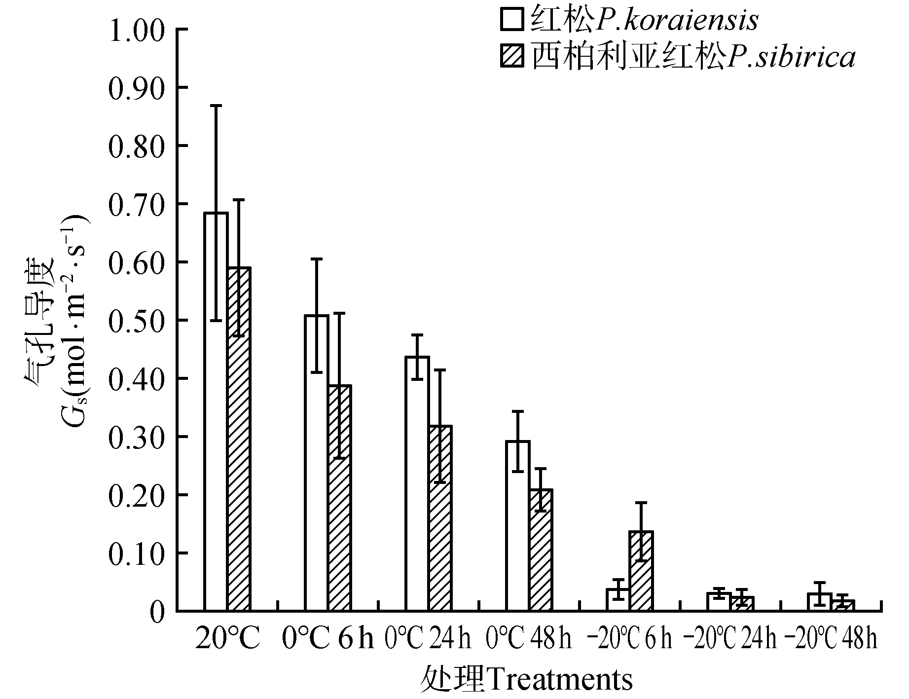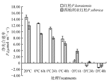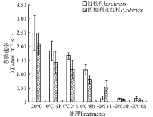 西伯利亚红松 P.sibirica | 净光合速率(Pn) Net photosynthetic rate | 处理间Treatments | 6 713.15 | 6 | 1 118.86 | 4 654.92 | 0.000 |