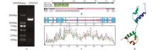 Cloning of DfMYB3 gene from Dendrocalamus farinosus and bioinformatics analysisA.Cloning of DfMYB3 gene from Dendrocalamus farinosus;B.Conserved domain analysis of DfMYB3;C.Secondary structure analysis of DfMYB3(Blue.Alpha helix;Purple.Random coil;Red.Extended strand;Green.Beta turn);D.3D structure analysis of DfMYB3