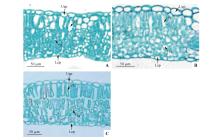 Thickness of cross section of three types of leaves