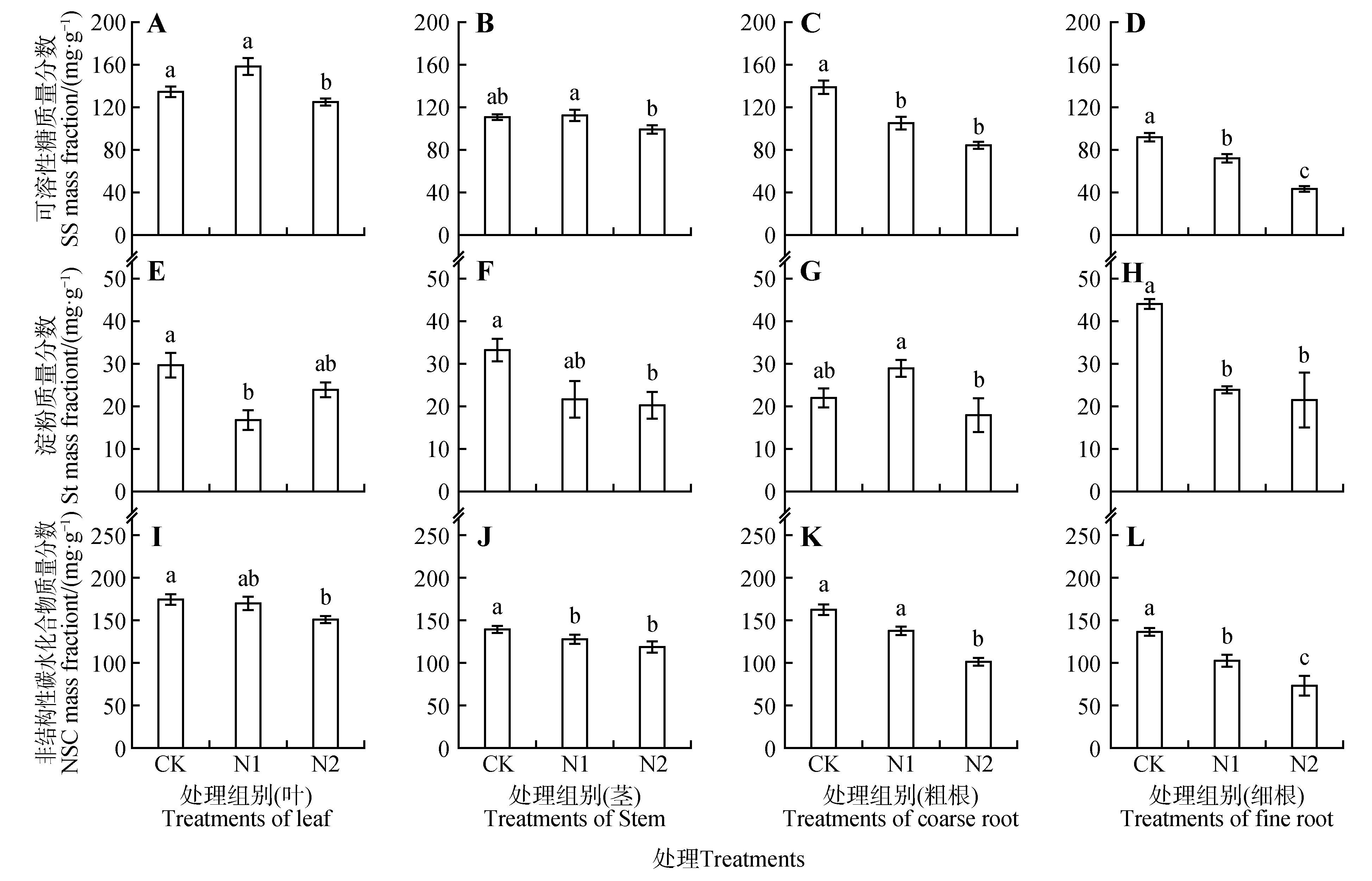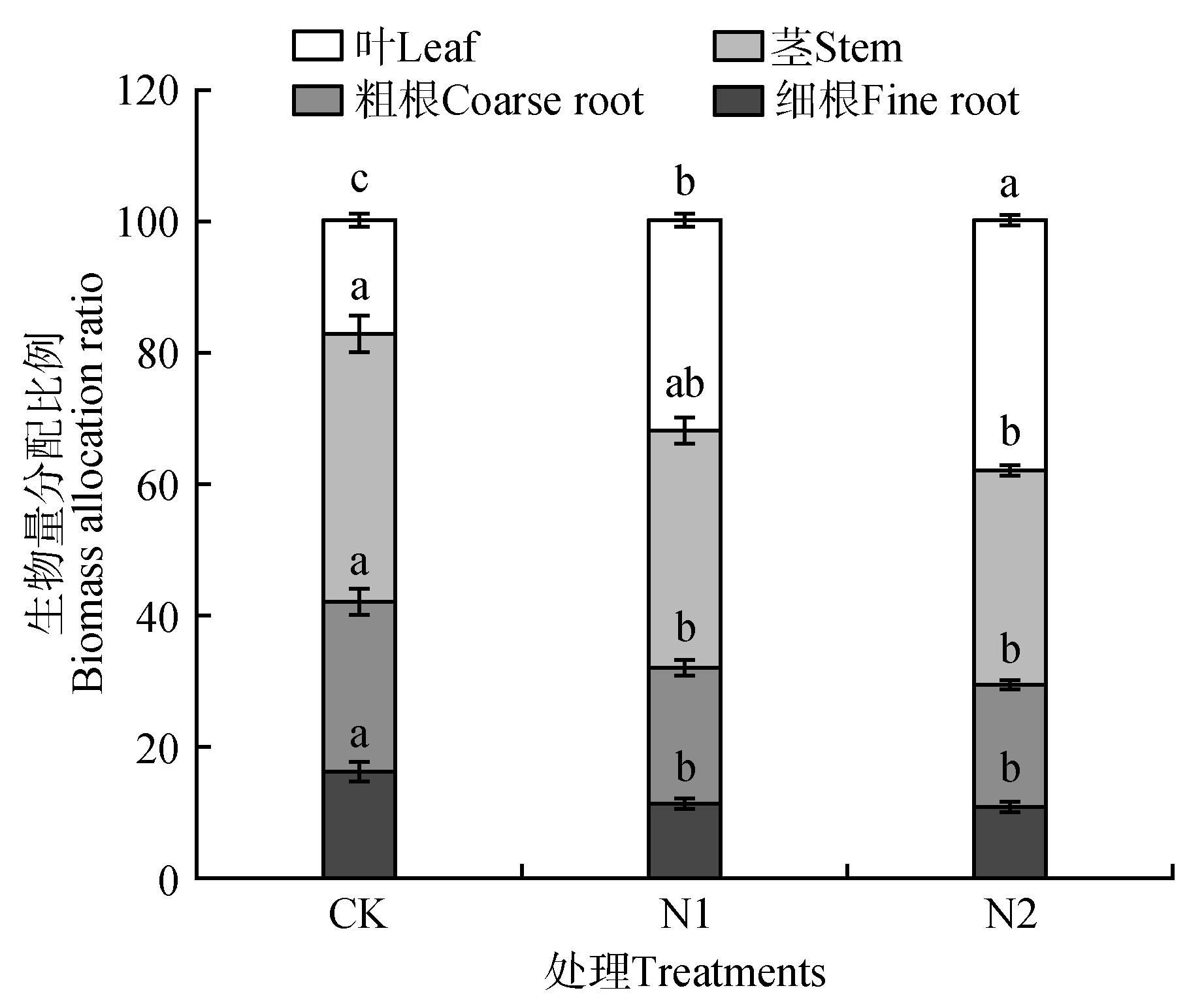 Effects of different nitrogen levels on biomass of C. bodinieri seedlings