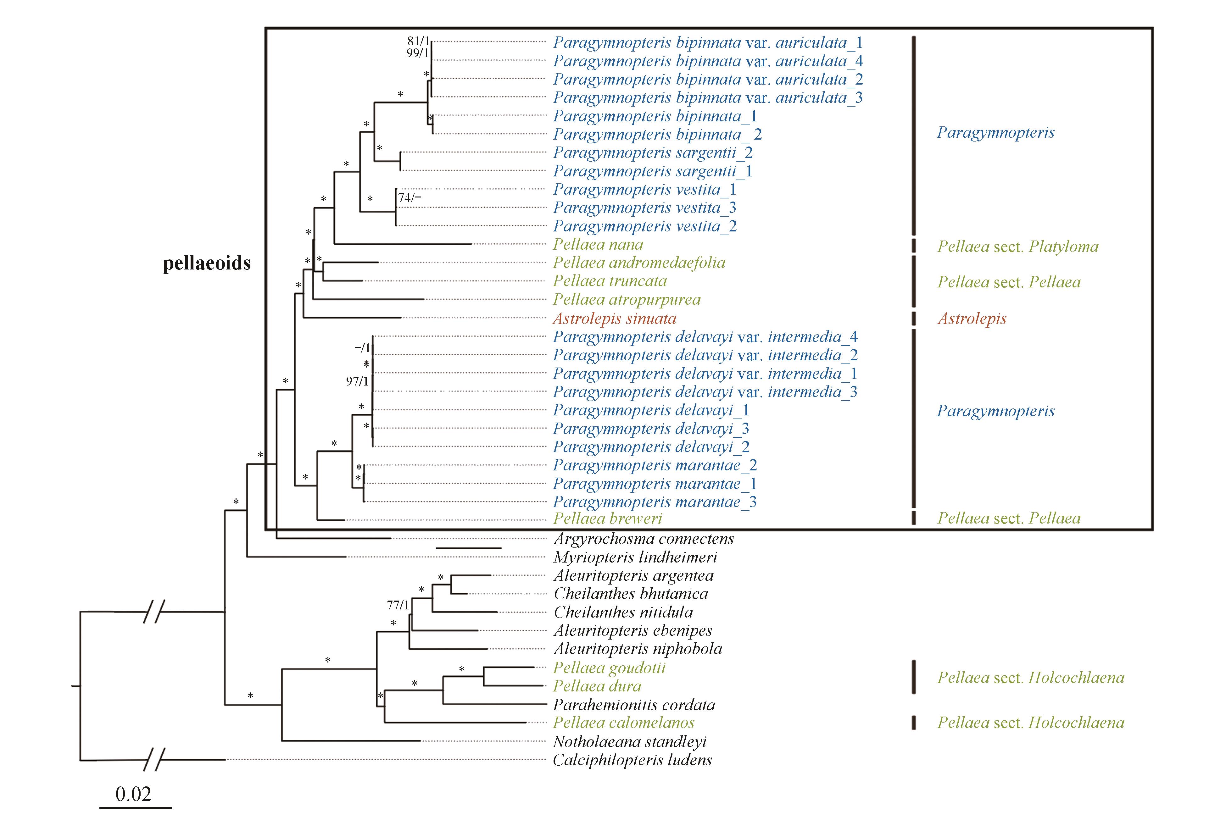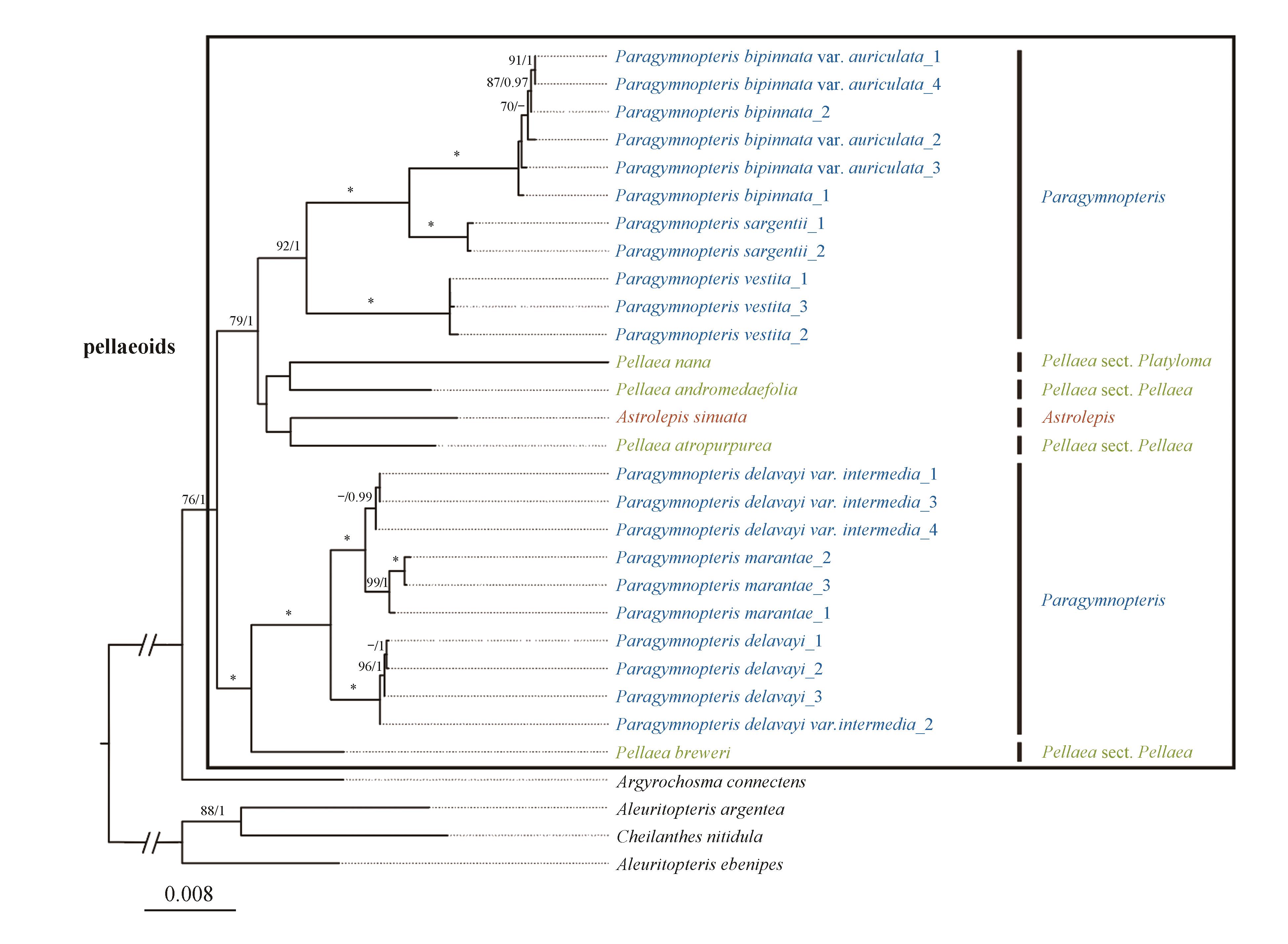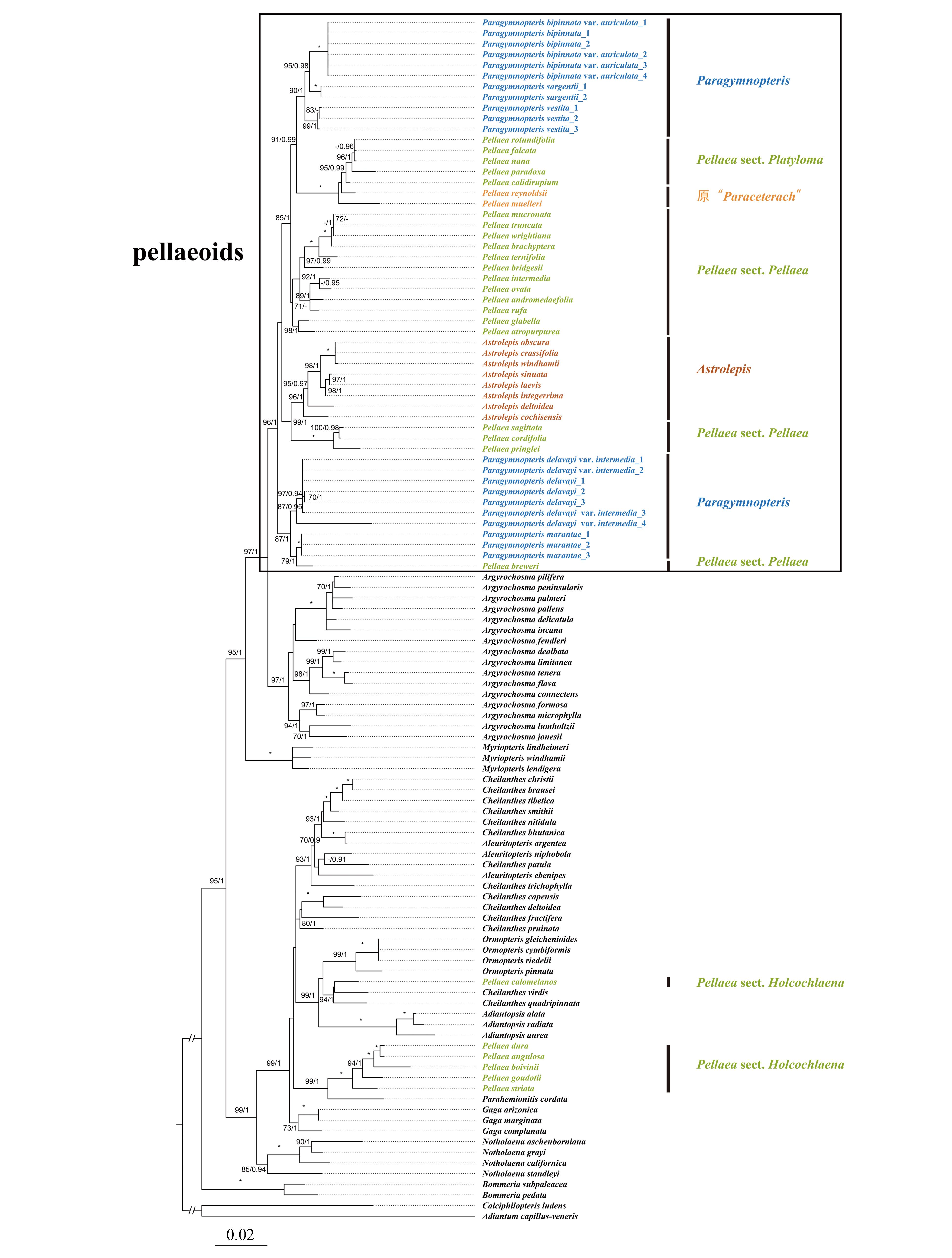 Key words: Paragymnopteris, Pellaea, Cheilanthoid, phylogeny, taxonomic revision, Pteridaceae