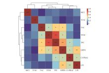 Heat map of correlation of polyphenol content and antioxidant activity in lily bulbsMCC. Metal chelating ability; TFAC. Total flavanol content; TAC. Total anthocyanin content; TFOC. Flavonoid content; TPC. Polyphenol content; DPPH. DPPH free radical scavenging ability; CUPRAC. Copper ion reduction ability; LPI. Inhibition of lipid peroxidation. *.P<0.05; **.P<0.01.