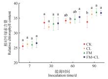 Response of seedling growth of ancient C. sinensis to inoculation of indigenous AM fungiCK.Without inoculation; FM.Inoculation with Funneliformis mosseae; CL.Inoculation with Claroideoglomus lamellosum; FM+CL.Mixed inoculation with Funneliformis mosseae and Claroideoglomus lamellosum;different lowercase letters indicated that there were significant differences in each growth parameter between treatments(P<0.05),n=5.