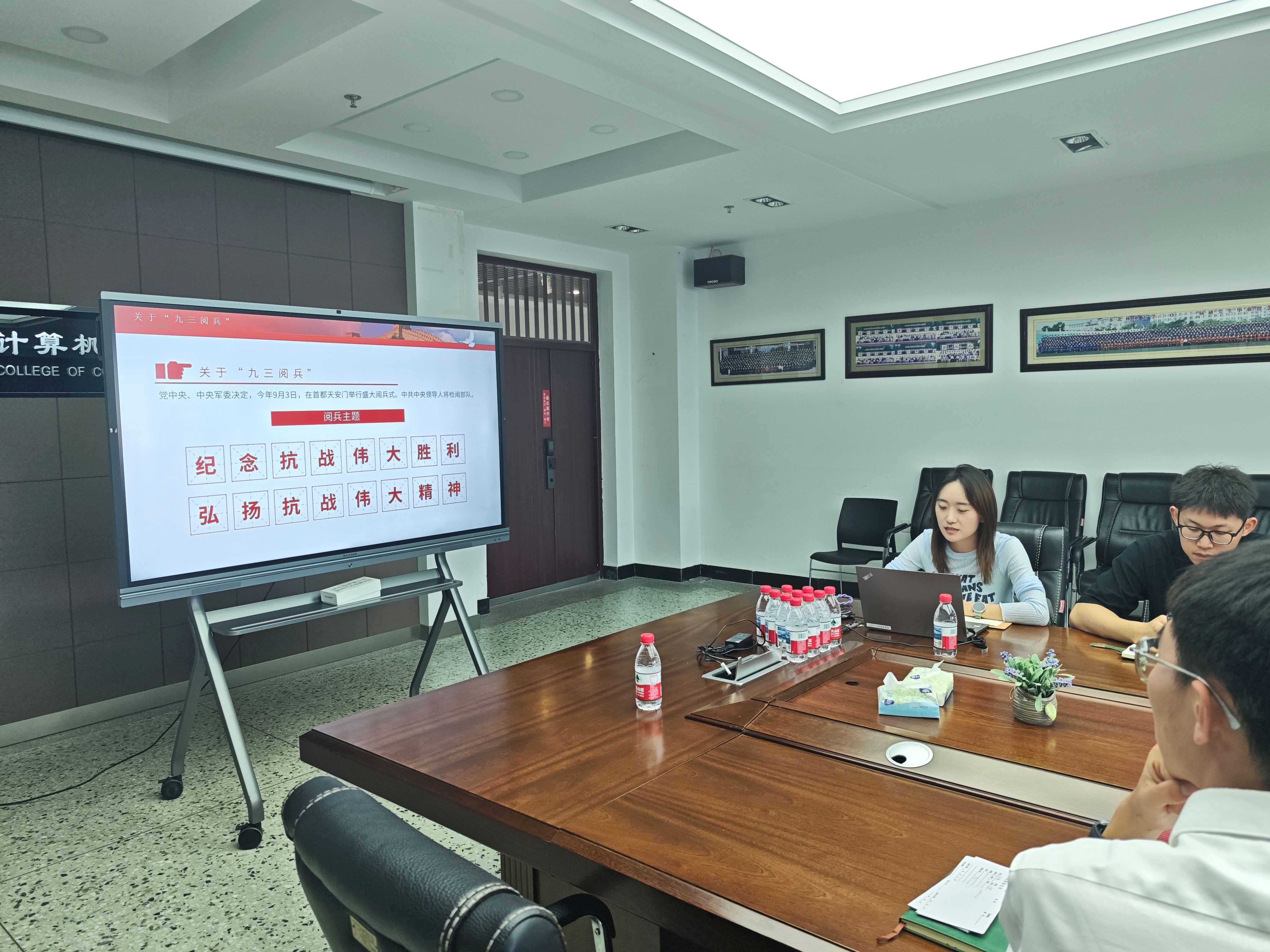 为深入弘扬爱国主义精神,强化师生国防教育意识,9月9日下午,计算机与控制工程学院于成栋楼1014会议室开展第25期“辅导员学习吧”。本期会议由辅导员王思琦主讲,围绕“纪念中国人民抗日战争暨世界反法西斯战争胜利80周年阅兵式”进行集中学习,学院党委副书记、副院长庄雯培及全体辅导员出席本次会议。会议围绕阅兵主题、亮点内容及其时代意义展开深入学习,并结合我院学科特色与学生工作实际进行交流研讨。